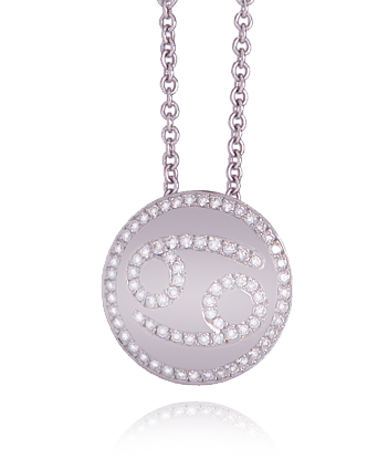 White gold pendant with Cancer sign and diamonds